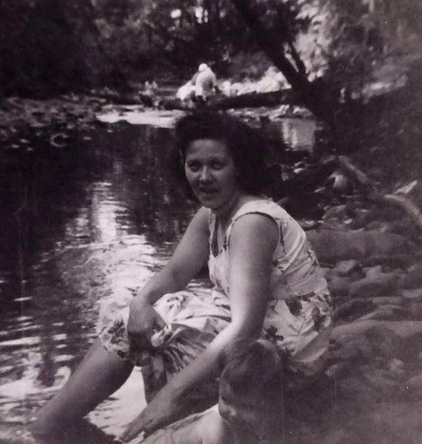 She so loved the outdoors, always yearning for the fresh air of the farmlands and fields laden with harvest. Every chance she got she would push my Dad dragging us along, to the fields orchards and woodland to glean potatoes, apples, strawberries, blue and raspberries. When I was a child I hated those hours traipsing through brambles that scratched and burned but she truly needed to escape the tight, hot city quarters and get out in nature. Oh, and it wasn't just us that she drug along, I know lots of my cousins here today will recall picking berries with my Mom - and our neighbors and school mates, too! If they were at the house, they came along. We were each given a pot and had to fill it up before we could leave. It takes a LOT of wild berries to fill up a pot, and it couldn't just be full we had to 'Put a heap on it!" before we could quit. Once we moved to Canan Station, Dad took over the gardening so I became the designated driver for these excursions. She was thrilled that I provided 3 new recruits as my sons were indoctrinated in gleaning the forest and fields. A couple of weeks ago my son Tom tagged me on Facebook with a photo of wild strawberries that he found growing in a field next to the train tracks while on an inspection trip.
